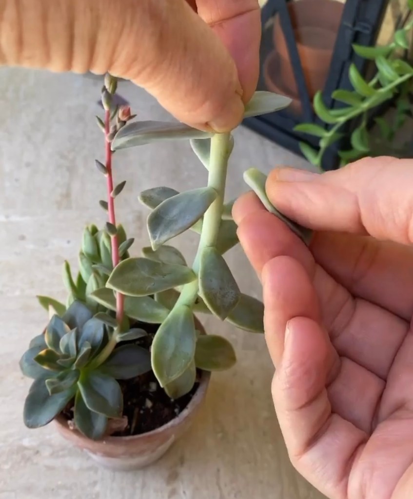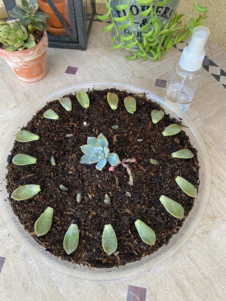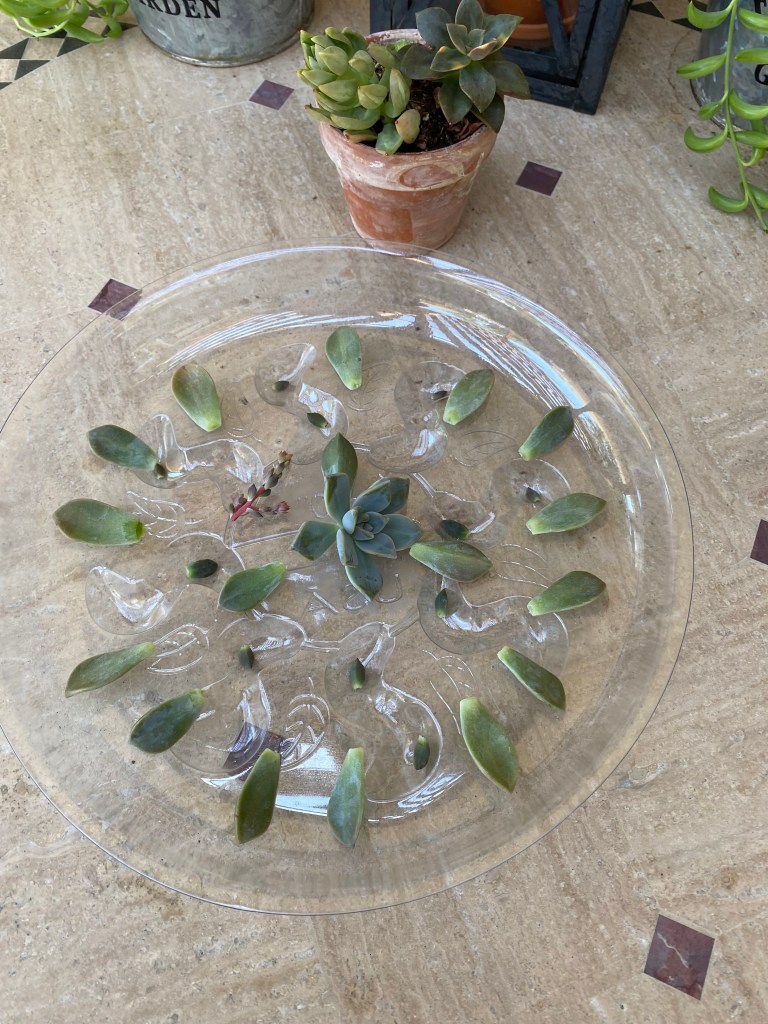 Step 4) Place the good leaves along with the top succulent clipping on a tray in the indirect sunlight and allow them to callous for two to three days.
