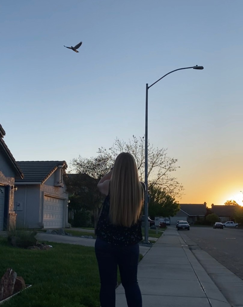 The next morning I was surprised yet again that this dove came back to see me once more, and we relived our encounter all over again. I would coo, she would coo – responding and flying over me every time I called her.