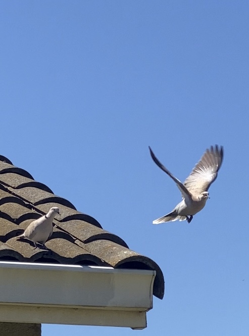 My now eight year journey of hearing the sound of turtle doves has been incredible. As a matter of fact, June 30th, 2022 was the seventh anniversary of when Sarah and Abraham first appeared. On the seventh anniversary they both came to visit again. I had not seen them together in quite a while. Sarah has been around, responding to me as always, but I had not seen Abraham for a while. On the seventh Anniversary they both showed up, and I was able to take these photos of them both, shown below.