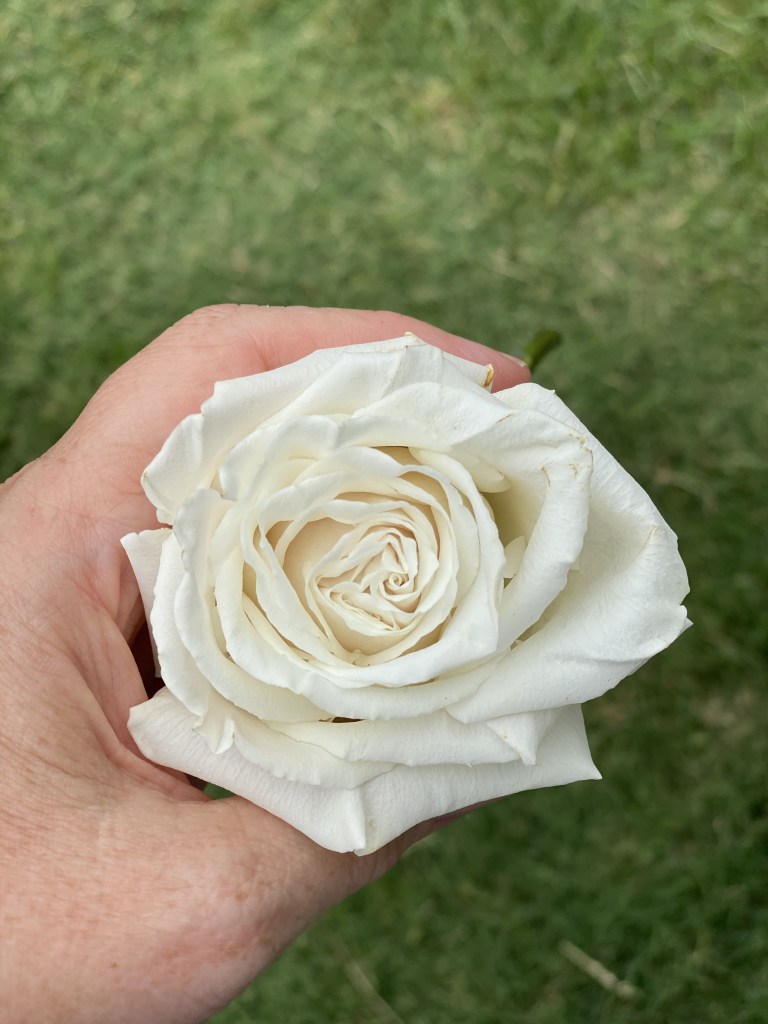 A delicate rose, wrapped in white, that I laid on the casket of a loved one. She is with Jesus now.