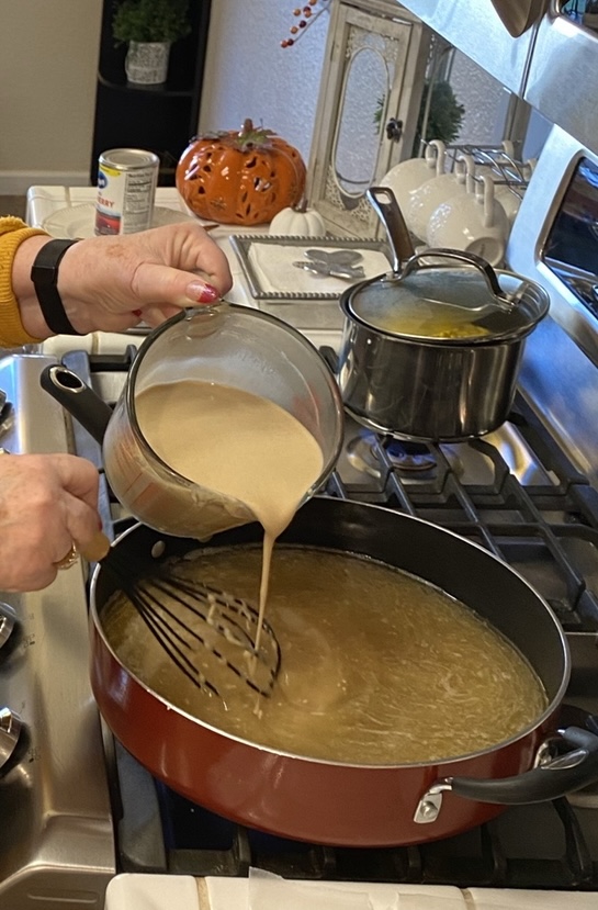 It has become our personal tradition to make the gravy roux together a couple of days before Thanksgiving and then finalize it on Thanksgiving day. Auntie Carole made sure that I learned the technique so that the recipe would continue on and be enjoyed by many others.